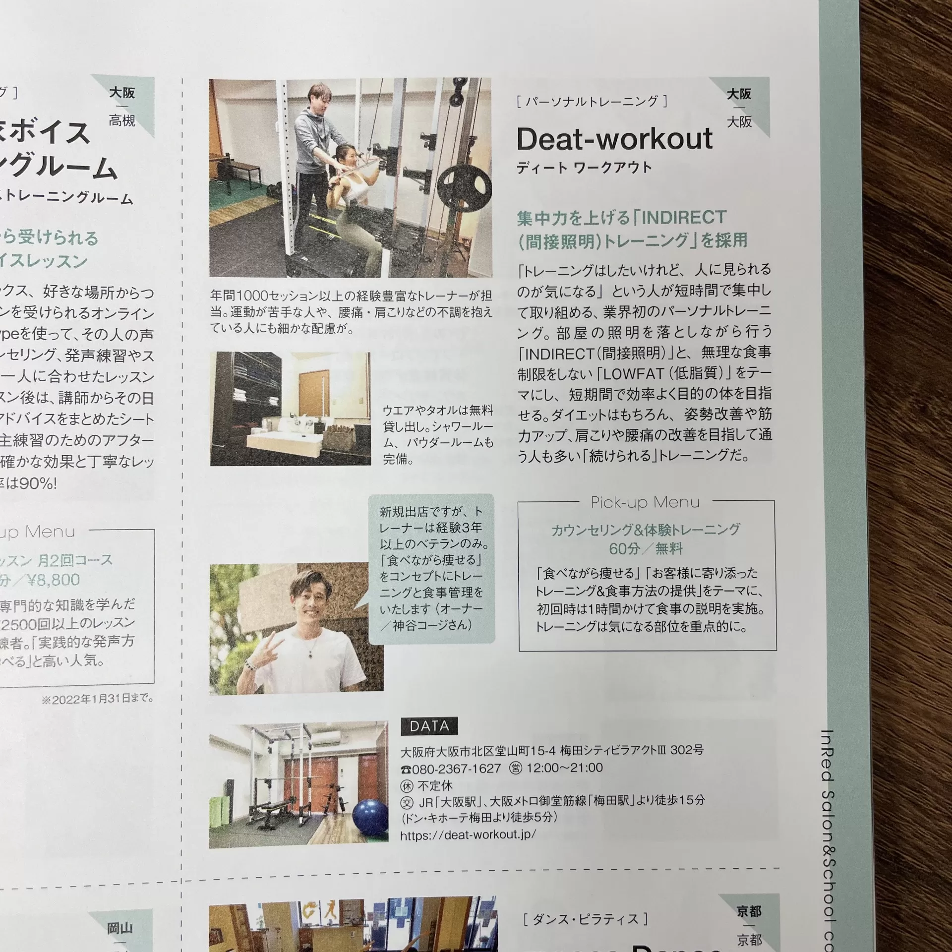 梅田でオススメのパーソナルジムDeat-workout|あのの女性誌『InRed』さんに掲載されました!!